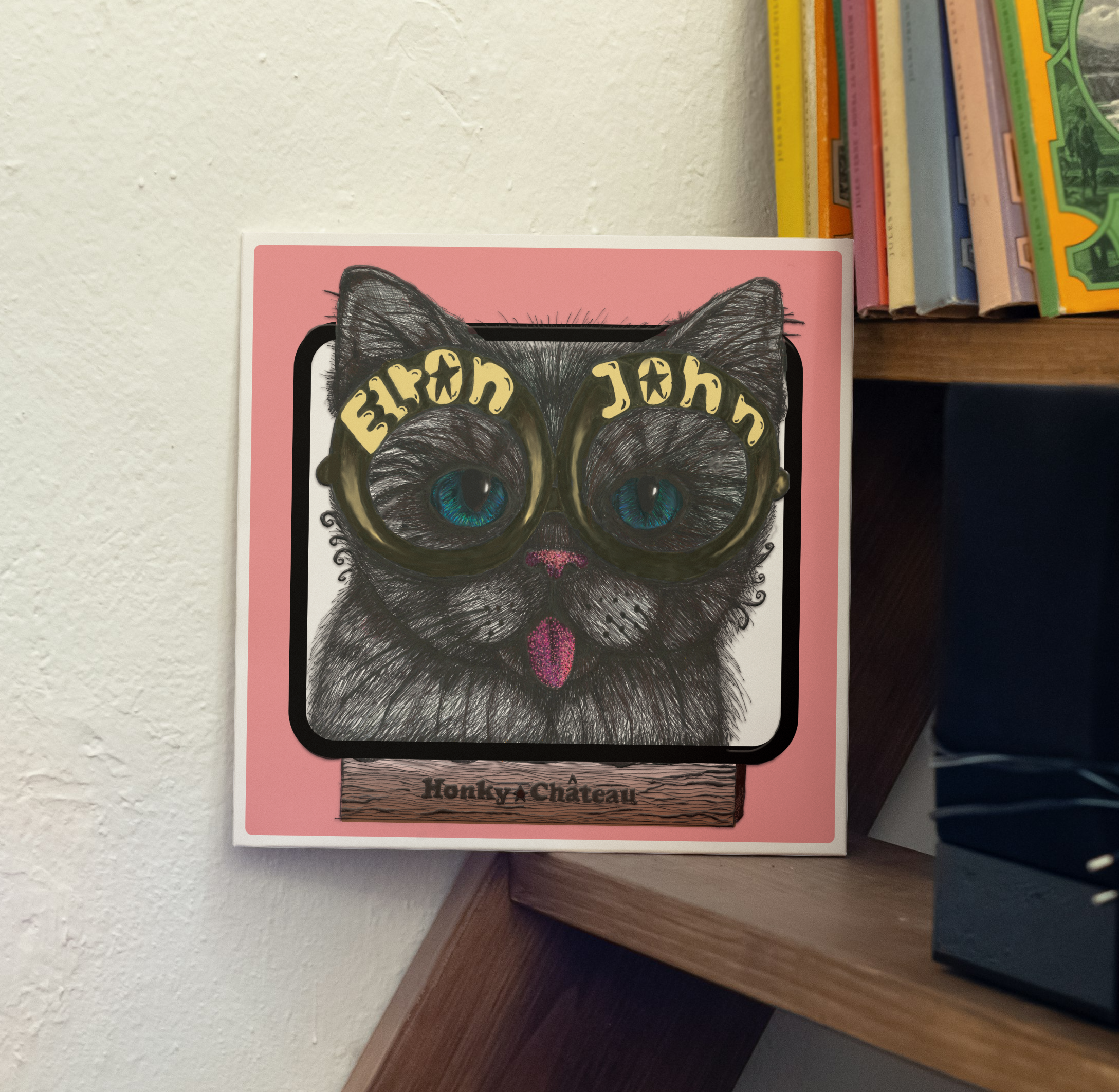 My idea is to depict a cat wearing Elton John’s glasses for the album cover, as a song called “Honky Cat” is found on this album.